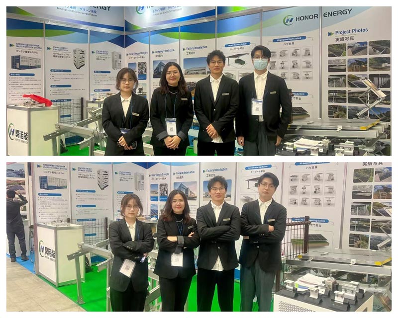 Bilang isang nangungunang photovoltaic mounting system exhibitor, ipinakita ng Honor Energy ang magkakaibang hanay ng mga sistema ng pag -mount ng lupa (carbon steel at aluminyo), carport mounting system, rooftop mounting system, farmland mounting system, bakod, energy storage system, clamp, at iba pang mga accessories, pagguhit sa mga taon ng karanasan sa proyekto sa merkado ng Hapon.