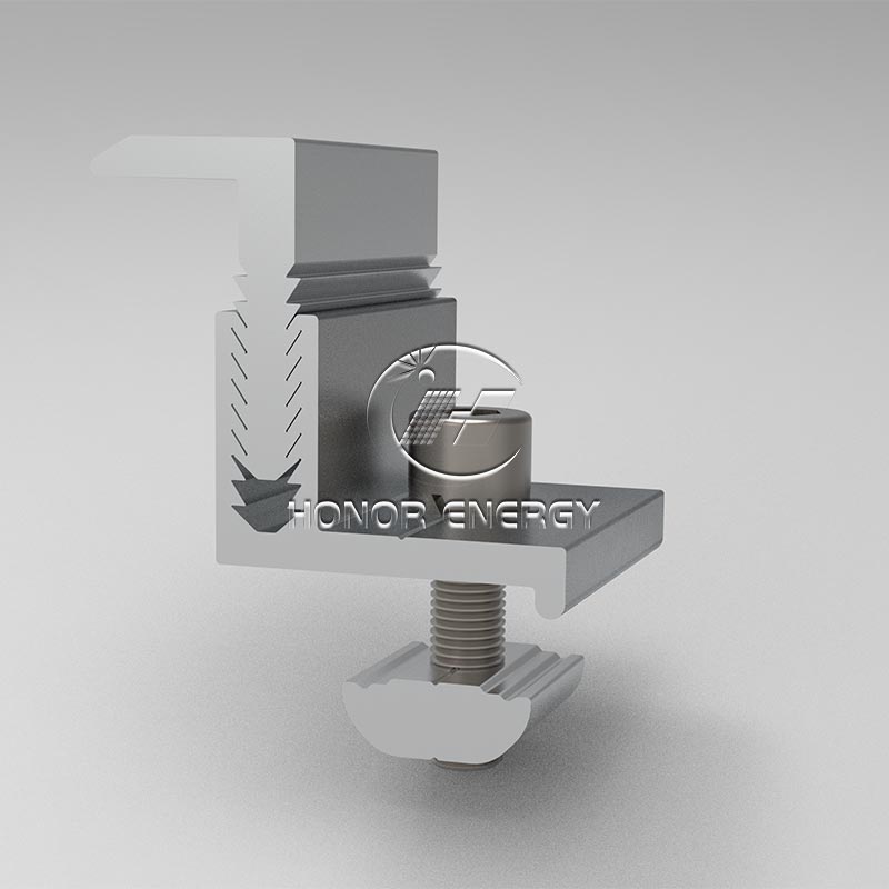 Ang Honor Energy ay isang tagagawa na dalubhasa sa solar end clamp , na kung saan ay isang pangunahing accessory ng hardware na ginamit sa solar photovoltaic system upang ayusin ang mga gilid ng mga module. Pangunahing naka -install ito sa pagitan ng gilid ng photovoltaic module at ang gabay na riles ng bracket. Sa pamamagitan ng mekanikal na puwersa ng pag -clamping, matatag na inaayos nito ang module sa bracket, na pinipigilan ang module mula sa paglilipat o pagbagsak sa ilalim ng pagkilos ng mga panlabas na puwersa tulad ng hangin at panginginig ng boses. Tiyakin na ang istruktura ng kaligtasan at lakas ng henerasyon ng katatagan ng mga photovoltaic arrays.